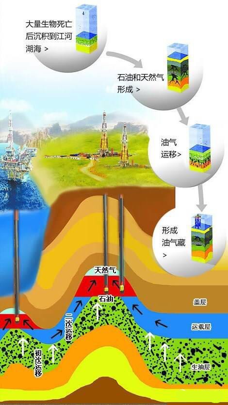 油氣的形成需要充足的沉積有機(jī)質(zhì)、適當(dāng)?shù)臏囟?、壓力、時(shí)間、細(xì)菌等物理和化學(xué)及生物化學(xué)條件。