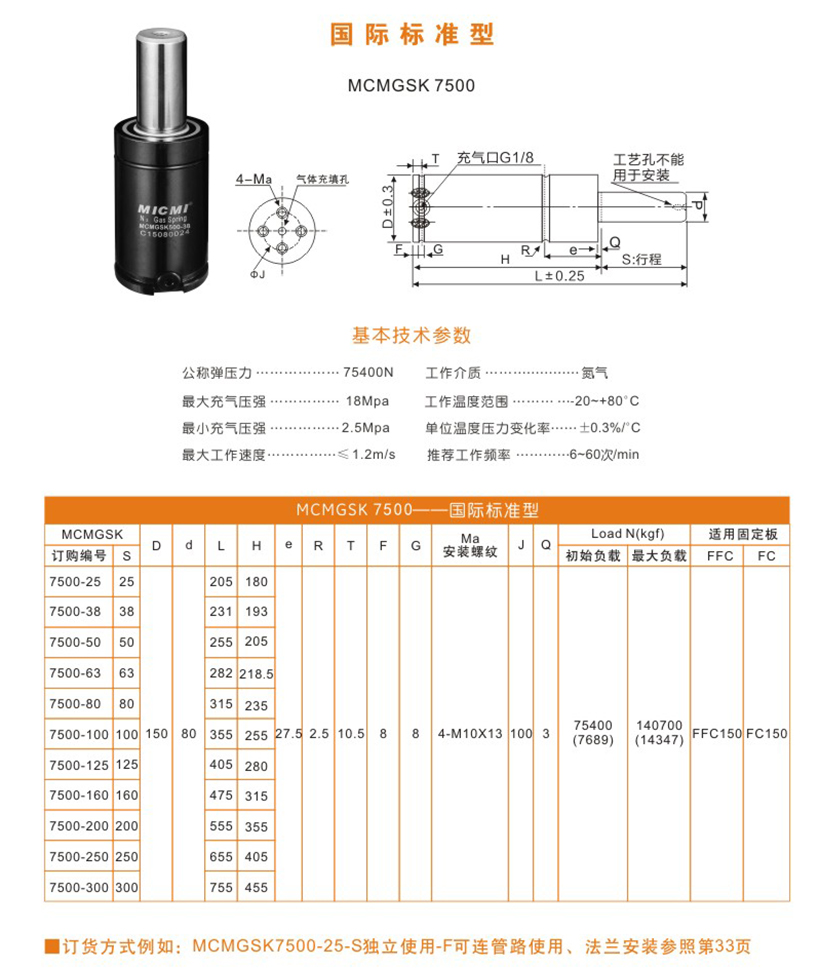 米蘇米MICMI五金塑膠模具壓縮氮?dú)鈴椈?“MCMGSK7500國際標(biāo)準(zhǔn)型” 多行程廠家直銷