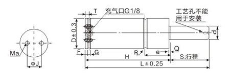 7、本司氮氣彈簧為免維護型,活塞桿運動時,嚴禁使用液體潤滑劑并應防止油或水等液體接觸,氮氣彈簧底部嚴禁浸泡在液體中,否則有可能造成氮氣彈簧爆裂,發(fā)生人身安全事故。初次使用亦可涂少量(MoS2)。
