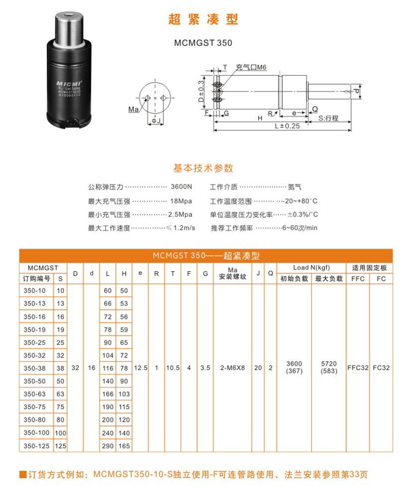 米蘇米MICMI五金塑膠模具壓縮氮?dú)鈴椈?“MCMGST350超緊湊型” 多行程廠家直銷