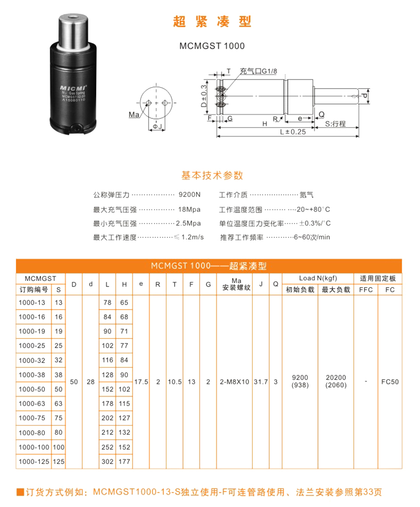 米蘇米MICMI五金塑膠模具壓縮氮?dú)鈴椈?“MCMGST1000超緊湊型” 多行程廠家直銷