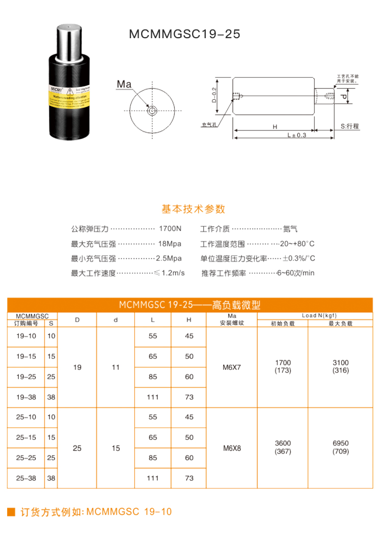 高負載微型-氮氣彈簧MGSC系列