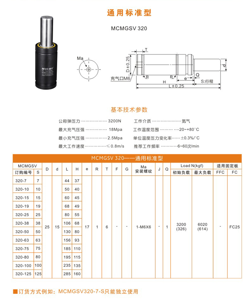 米蘇米MICMI五金塑膠模具壓縮氮?dú)鈴椈?“MCMGSV320通用標(biāo)準(zhǔn)型” 多行程廠家直銷