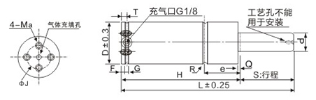 7、本司氮氣彈簧為免維護型,活塞桿運動時,嚴禁使用液體潤滑劑并應防止油或水等液體接觸,氮氣彈簧底部嚴禁浸泡在液體中,否則有可能造成氮氣彈簧爆裂,發(fā)生人身安全事故。初次使用亦可涂少量(MoS2)。